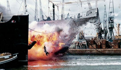 The principle behind the technique is that we project a small picture of the live action. Unlike many companies who build 50ft models, we build small models and shrink the actors down to size in order to have control. The larger you go with complicated hydraulically controlled mechanisms, the less control you have – particularly in dramatic situations – so we use a small rear-projected image of the live action behind the animated model, sometimes adding matting process.
